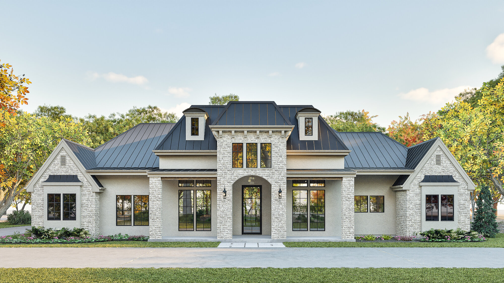 - Flat or minimal-slope lots: Great for Modern Farmhouse or Transitional Ranch plans that emphasize single-level living and long horizontal lines.