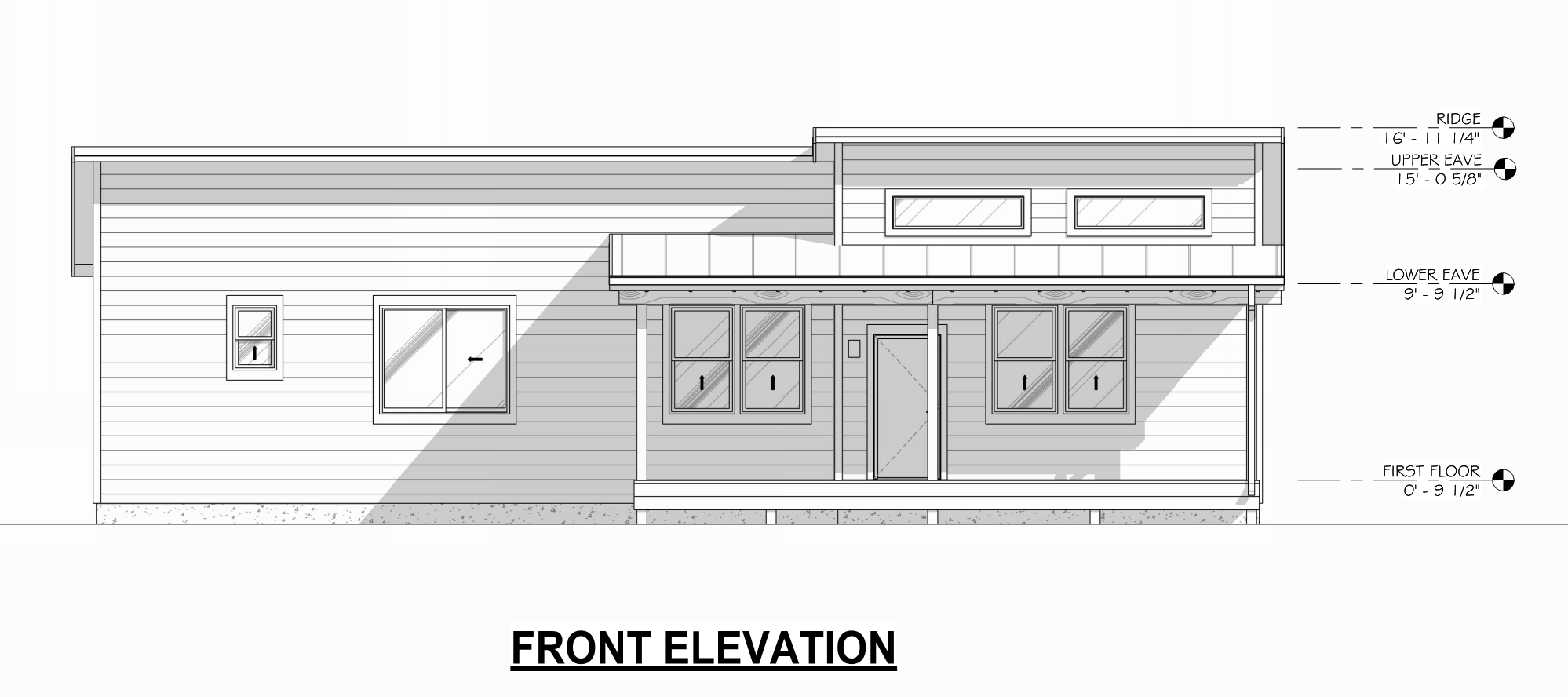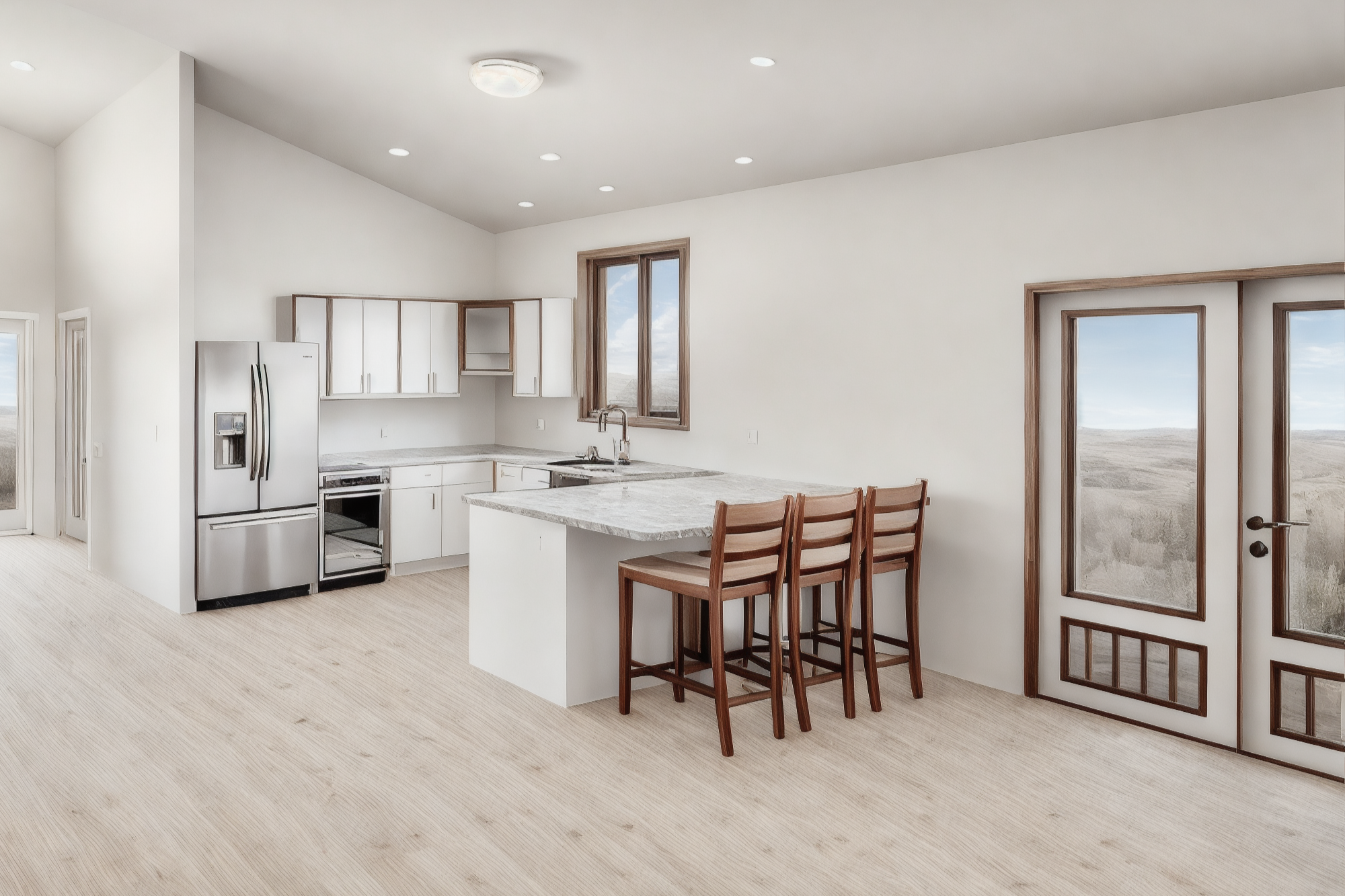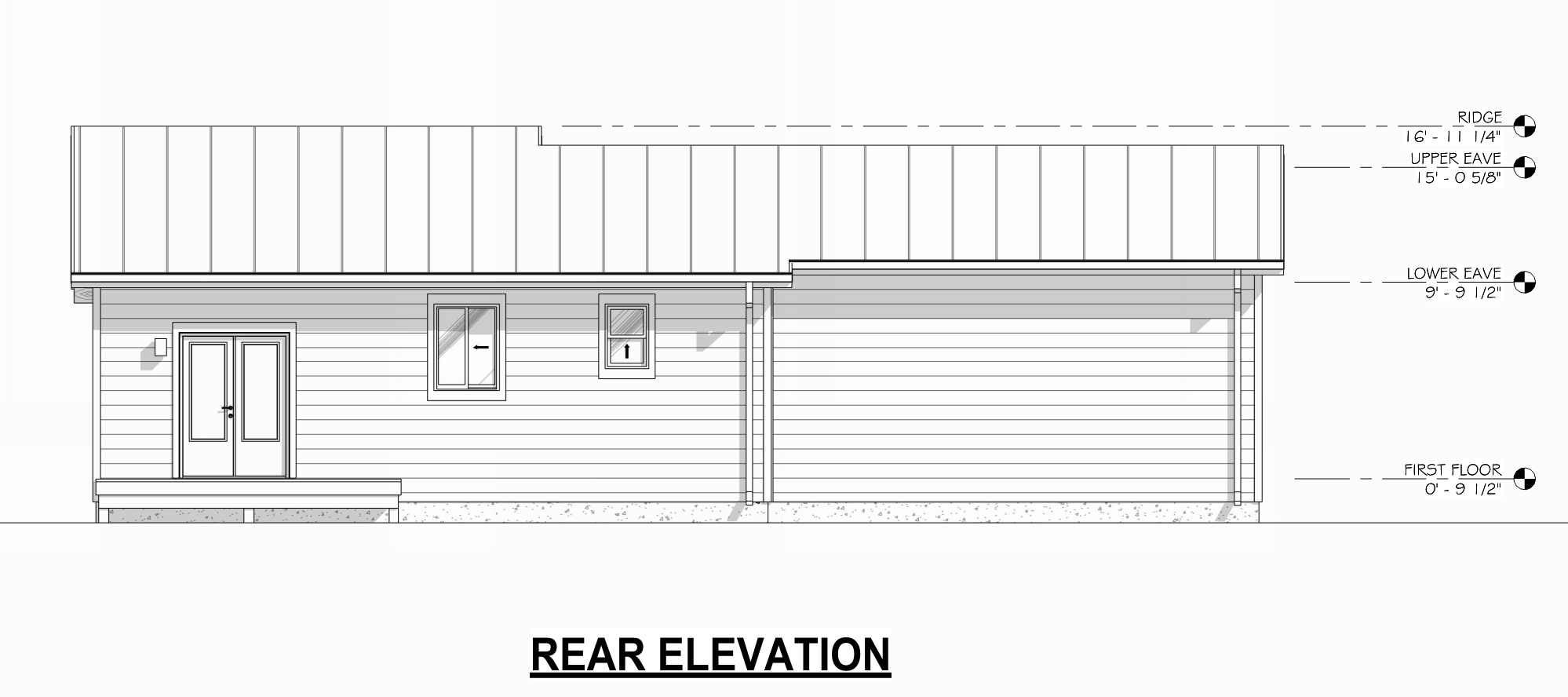 This 800 sq ft accessory dwelling is a modern, single-story home designed for independent living. With one bedroom and 1.5 baths, it features a spacious kitchen, a large living area, and decks on both sides. Tall ceilings and well-placed windows create an open, airy feel, connecting the indoors with the natural surroundings. The simple yet stylish design ensures comfort and functionality for a family seeking a peaceful rural retreat.