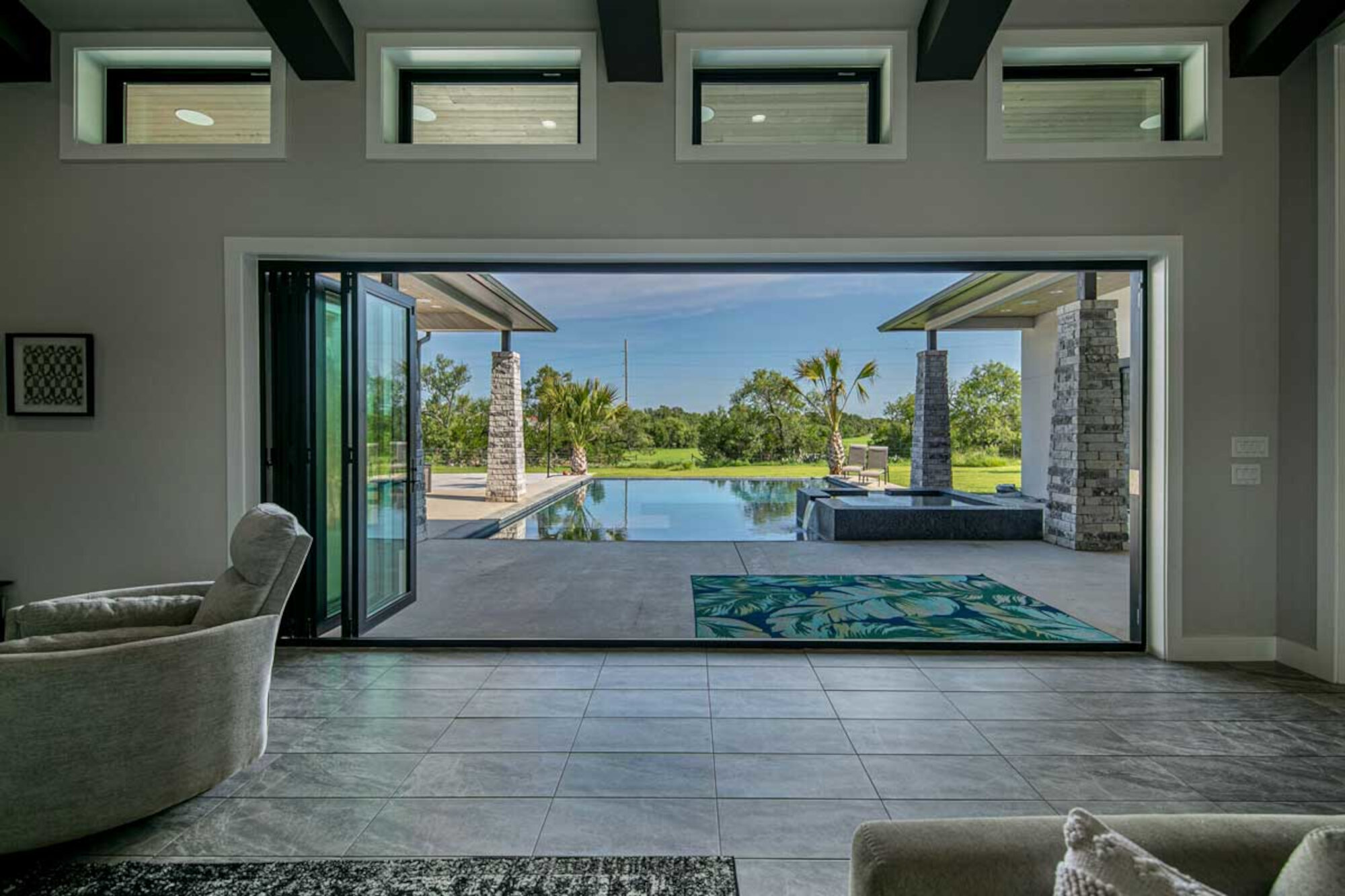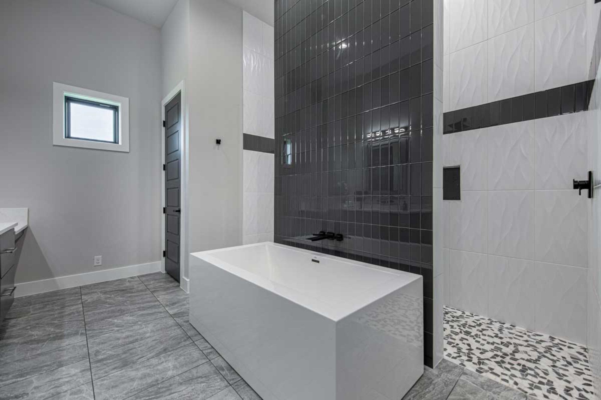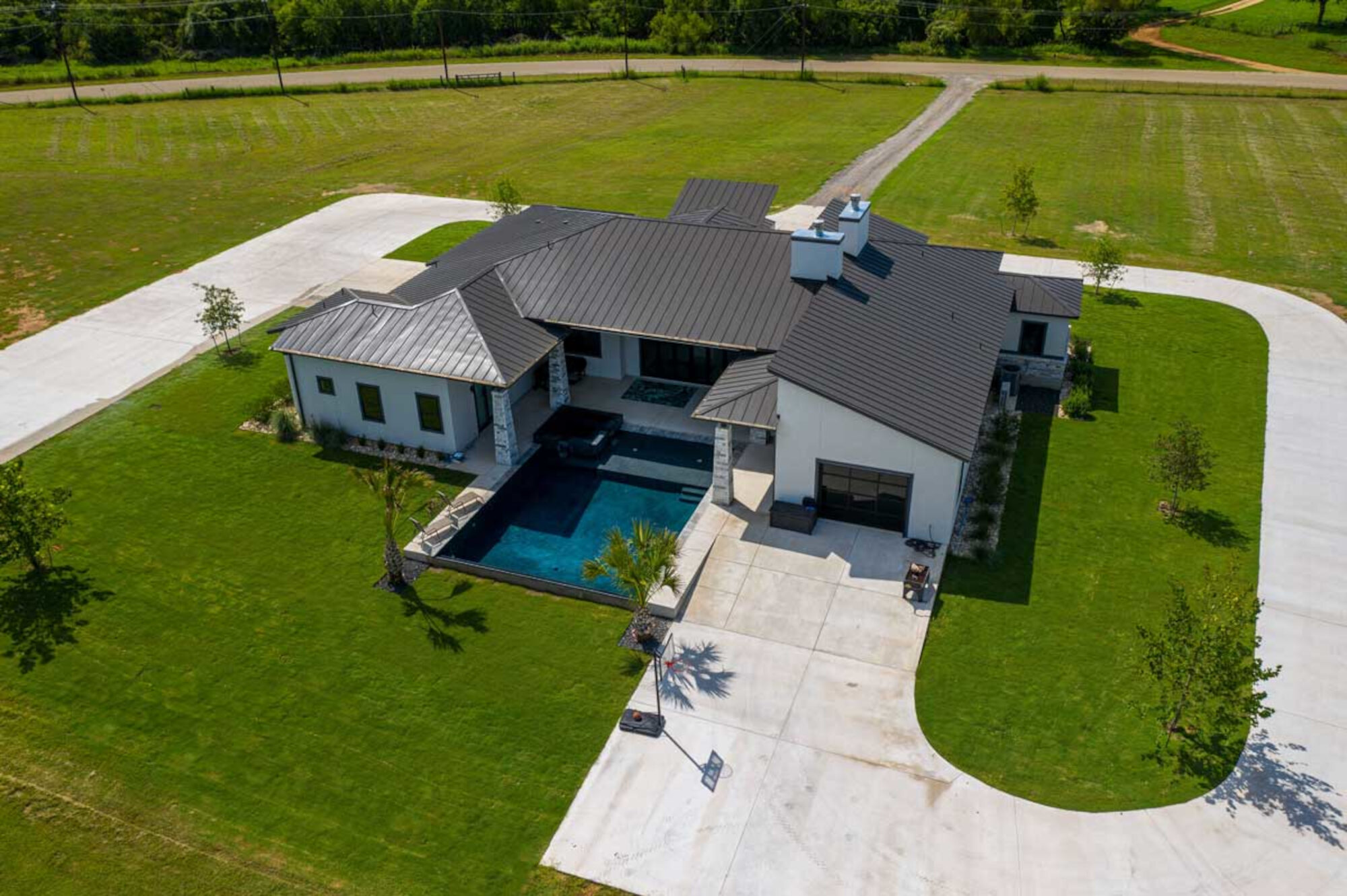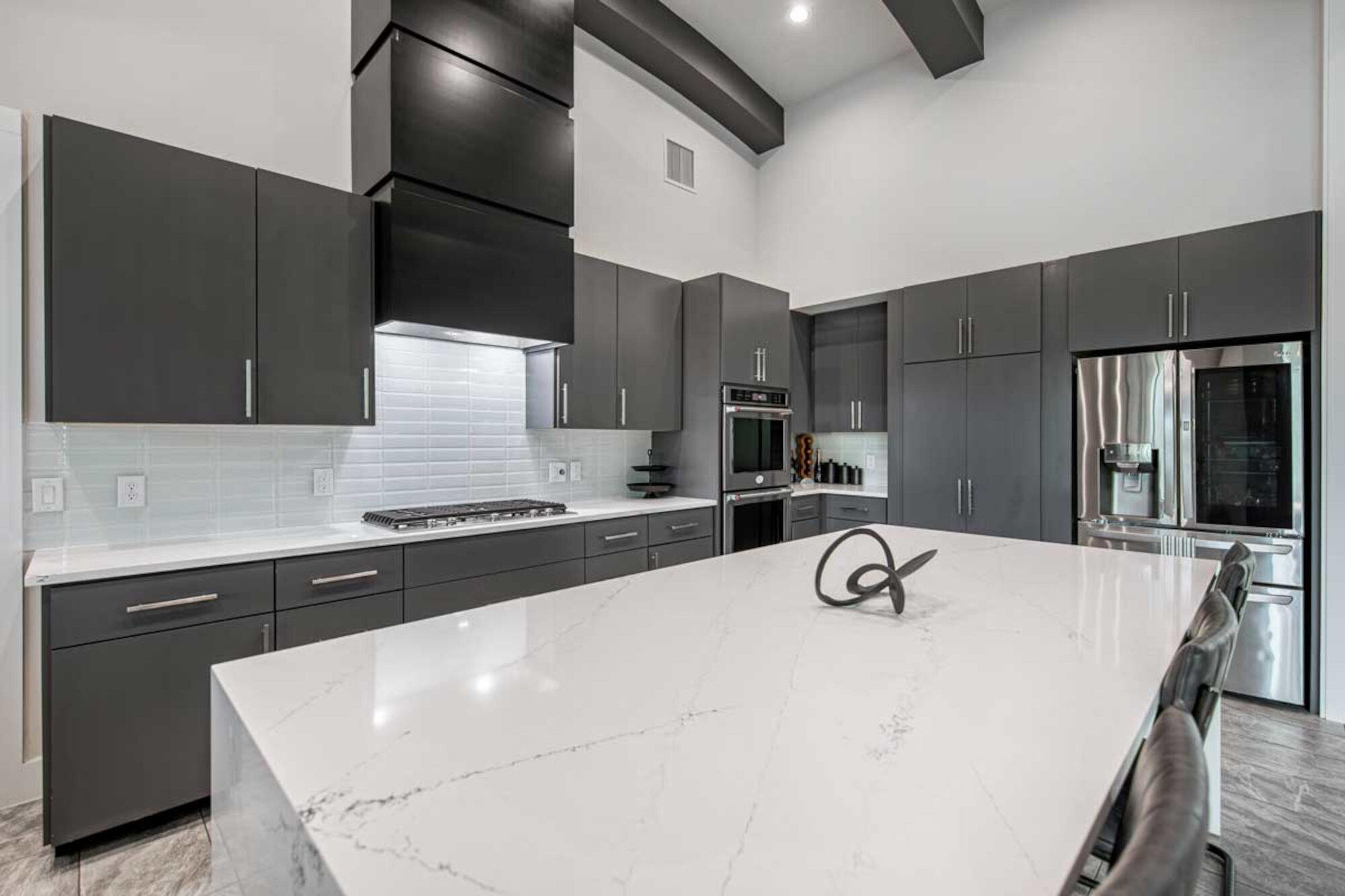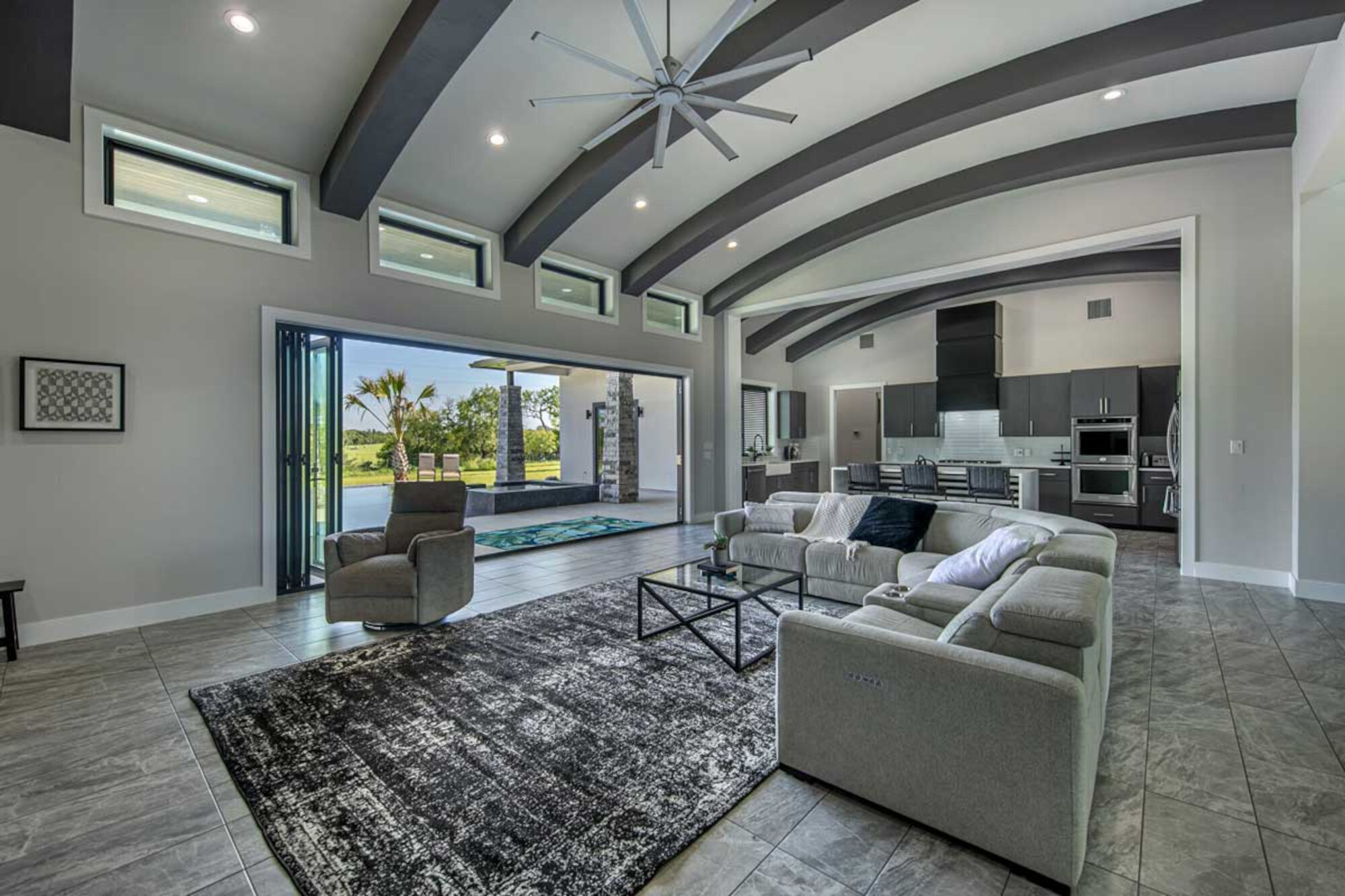 This elegant architectural gem is a 3,186-square-foot one-level home surrounded by tranquil surroundings. The exterior is beautifully accented with stone and expansive windows that offer plenty of natural light. The grand foyer welcomes you with soaring ceilings and sleek finishes.