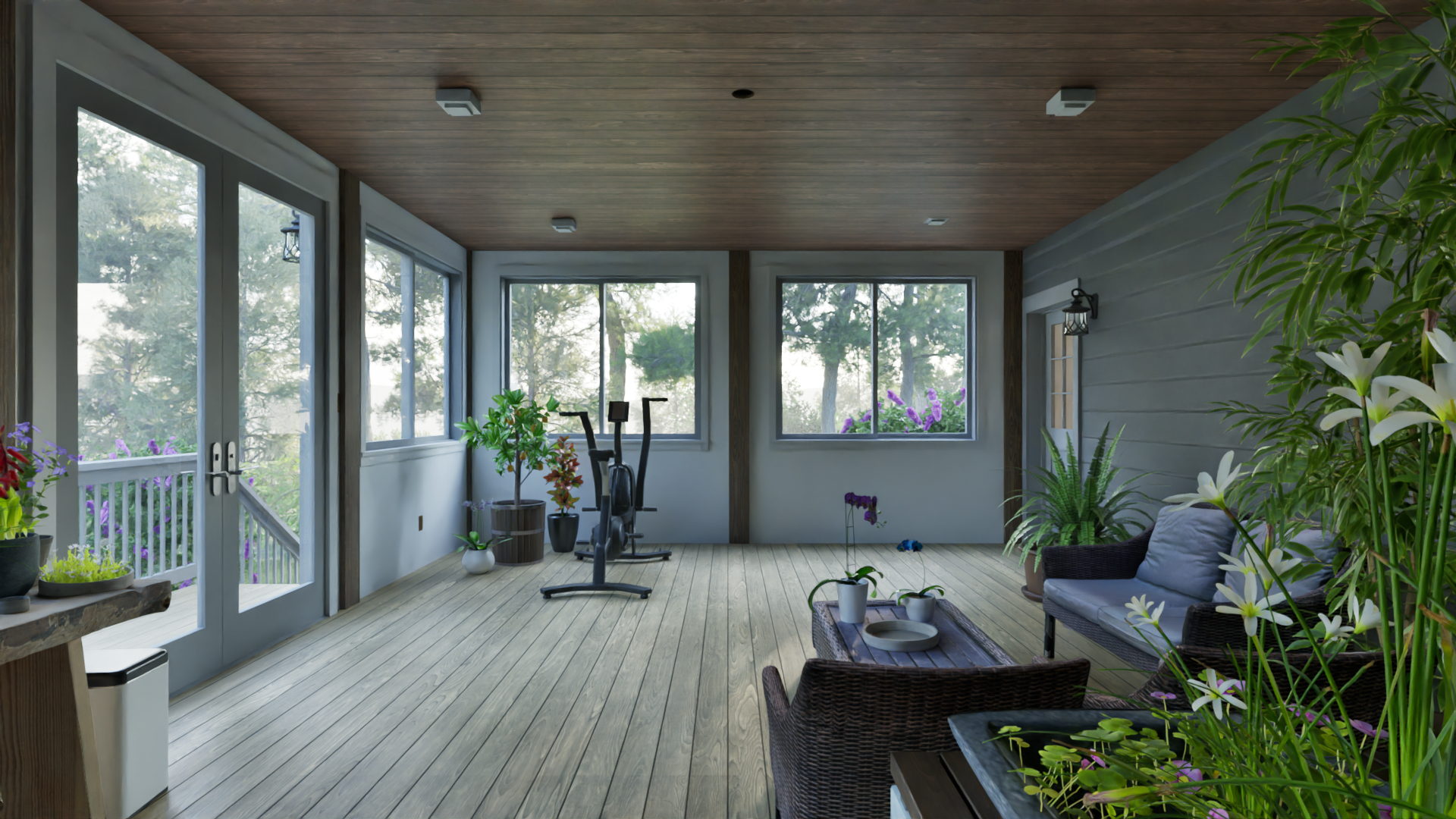 This two-story deck addition transforms outdoor living with a total area of 874 square feet. The lower level features an unconditioned sunroom, a versatile space perfect for enjoying a good book or hosting gatherings year-round. Expansive windows flood the sunroom with natural light, creating a seamless connection between indoor comfort and outdoor enjoyment. Together, the sunroom and deck offer a welcoming and functional area for various activities, significantly expanding the home’s living space and blending indoor and outdoor lifestyles.