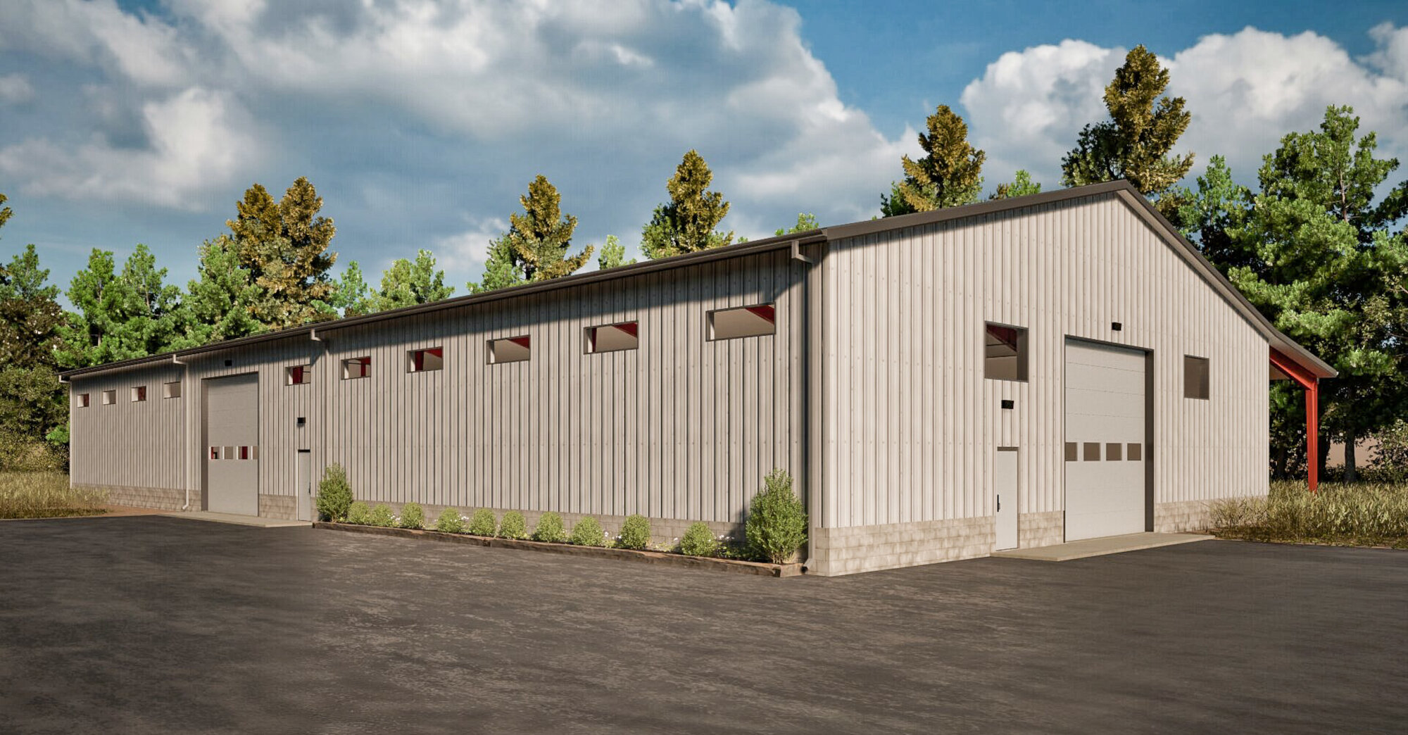 The steel-framed shop building measures over 11,250 square feet and is designed to cater to both industrial and commercial purposes. Its modern design features a robust steel cladding system and large roll-up doors, making it easy to access. The spacious interior features wide, column-free spans perfect for machinery, workstations, or storage. Using high-quality materials such as concrete flooring and concrete block lower wall aprons ensures longevity and low maintenance. The building can be customized with offices, restrooms, and utility areas per your requirements. Its flexibility allows for easy reconfiguration and future expansion, making it a valuable asset for long-term use.