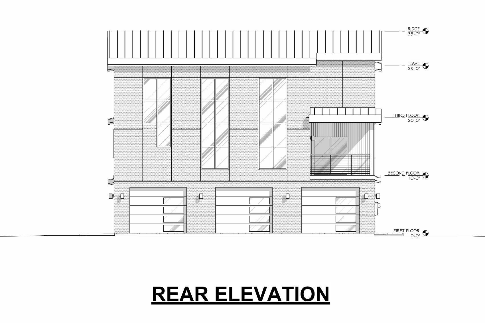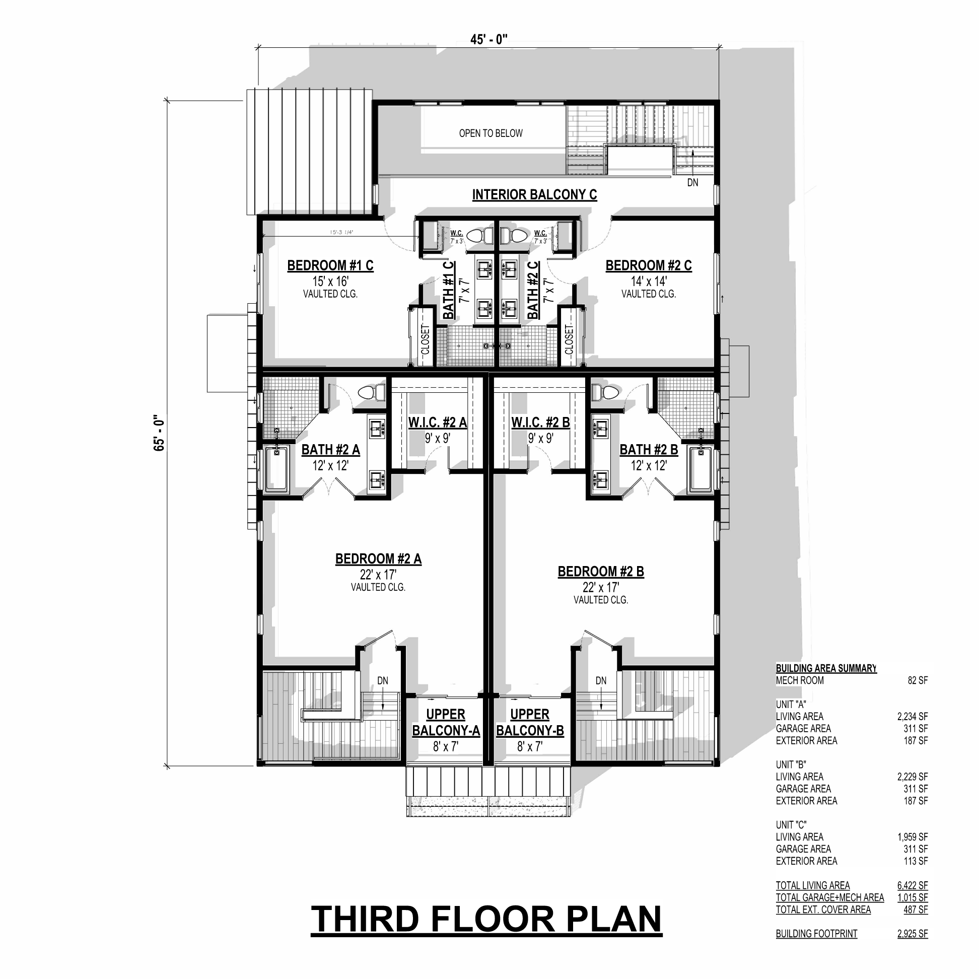 Externally, the triplex features a sleek stucco finish and a contemporary metal roof with a subtle 1/12 pitch, emphasizing its modern aesthetic. The attached rear garage offers convenience and security, with one bay per unit and 1,015 square feet of space. Built on a monolithic slab foundation with durable 2×6 exterior walls, this triplex seamlessly combines modern luxury with stability. With a height of 35 feet and dimensions of 45 feet by 65 feet, our modern triplex design perfectly balances style and functionality, catering to contemporary living.