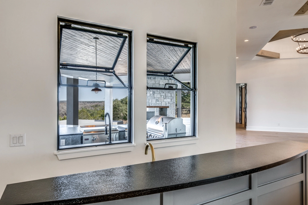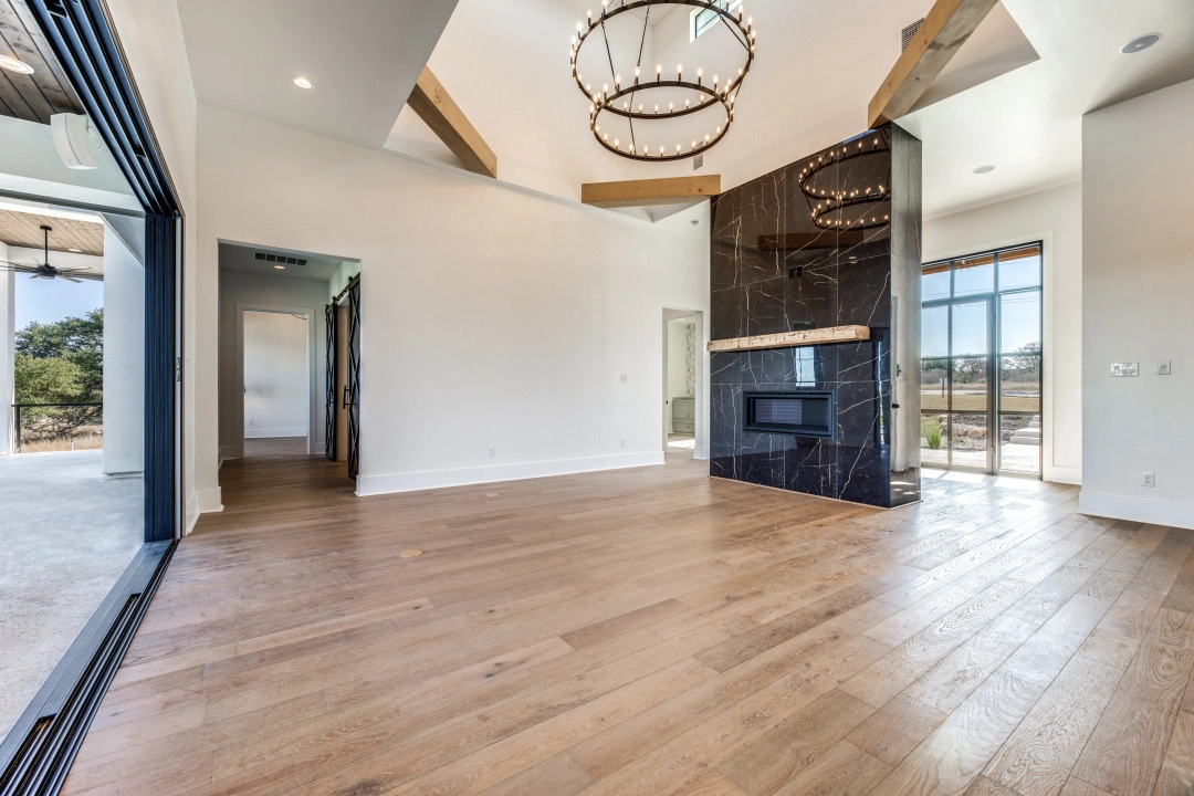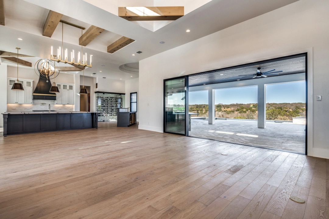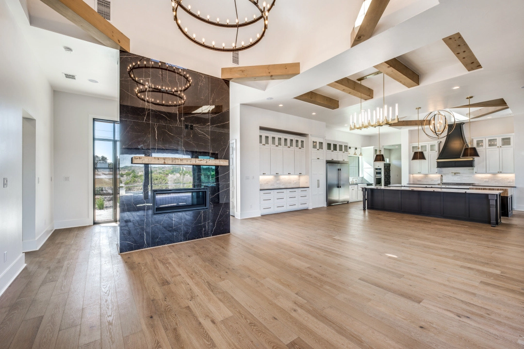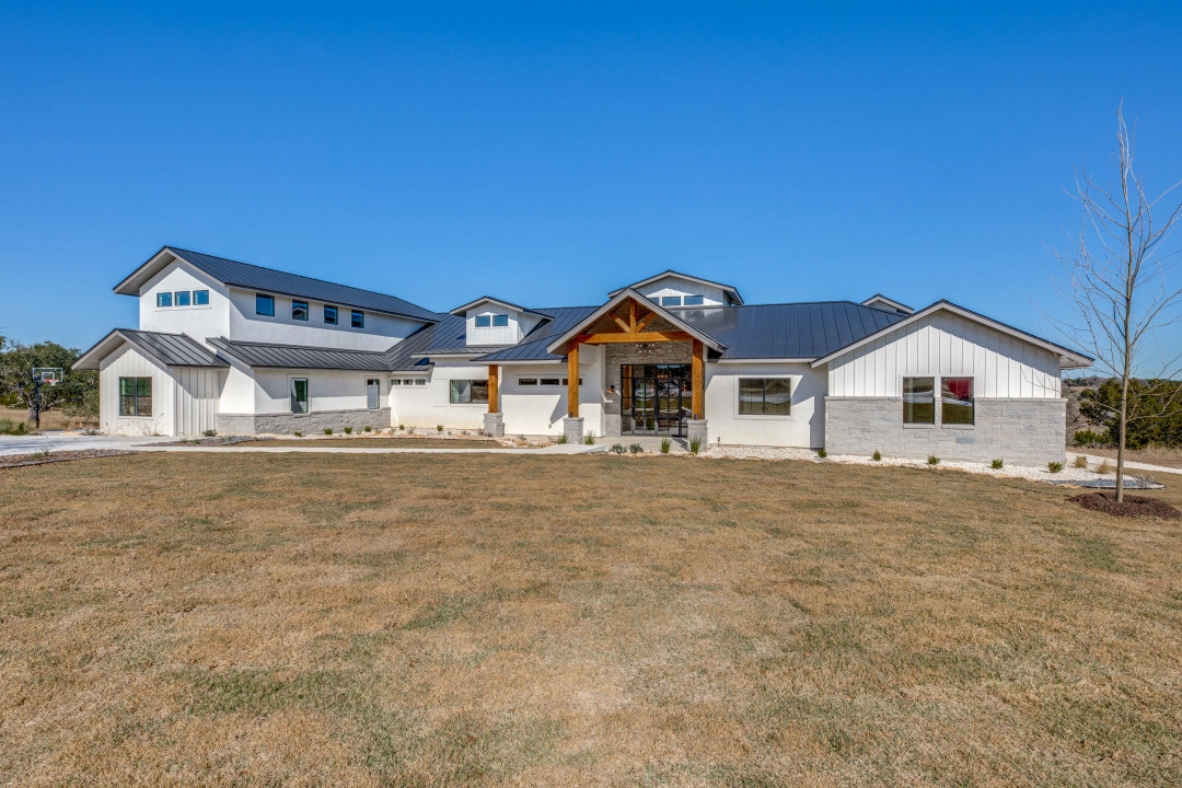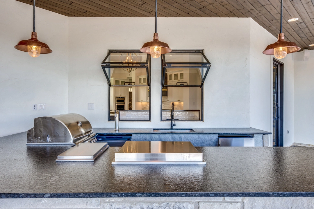 This stunning single-story Transitional Home Plan with Open Concept Living is a perfect blend of modern sophistication and comfort. It features four luxurious bedrooms, including a beautiful master suite, and showcases meticulous design throughout. The open-concept living area seamlessly integrates the living, dining, and kitchen spaces, creating an inviting atmosphere for gatherings. The interior is flooded with natural light thanks to the expansive windows, while the fireplace and stylish accents provide warmth and elegance. The primary suite offers a tranquil retreat with a private patio and a lavish ensuite bathroom. The remaining bedrooms provide comfort and versatility. The exterior features a covered entertainment area that expands the living space outdoors, complete with an outdoor kitchen and lounging spaces. With its captivating design and thoughtful features, this 4-bedroom single-story abode offers an exceptional lifestyle, combining refined living and indoor-outdoor enjoyment.