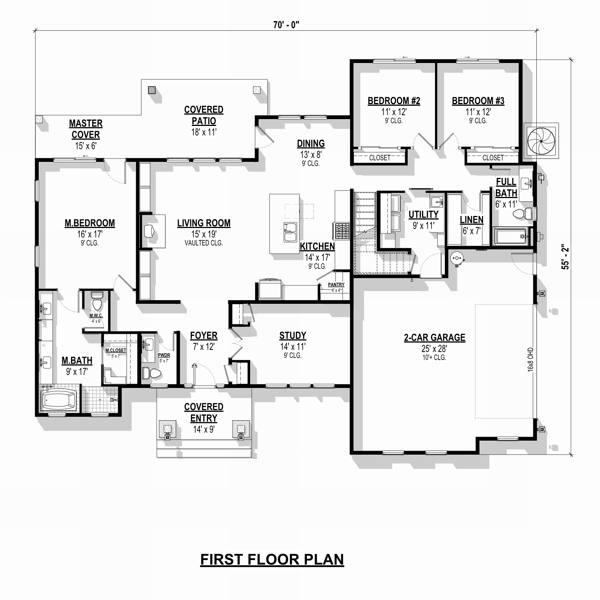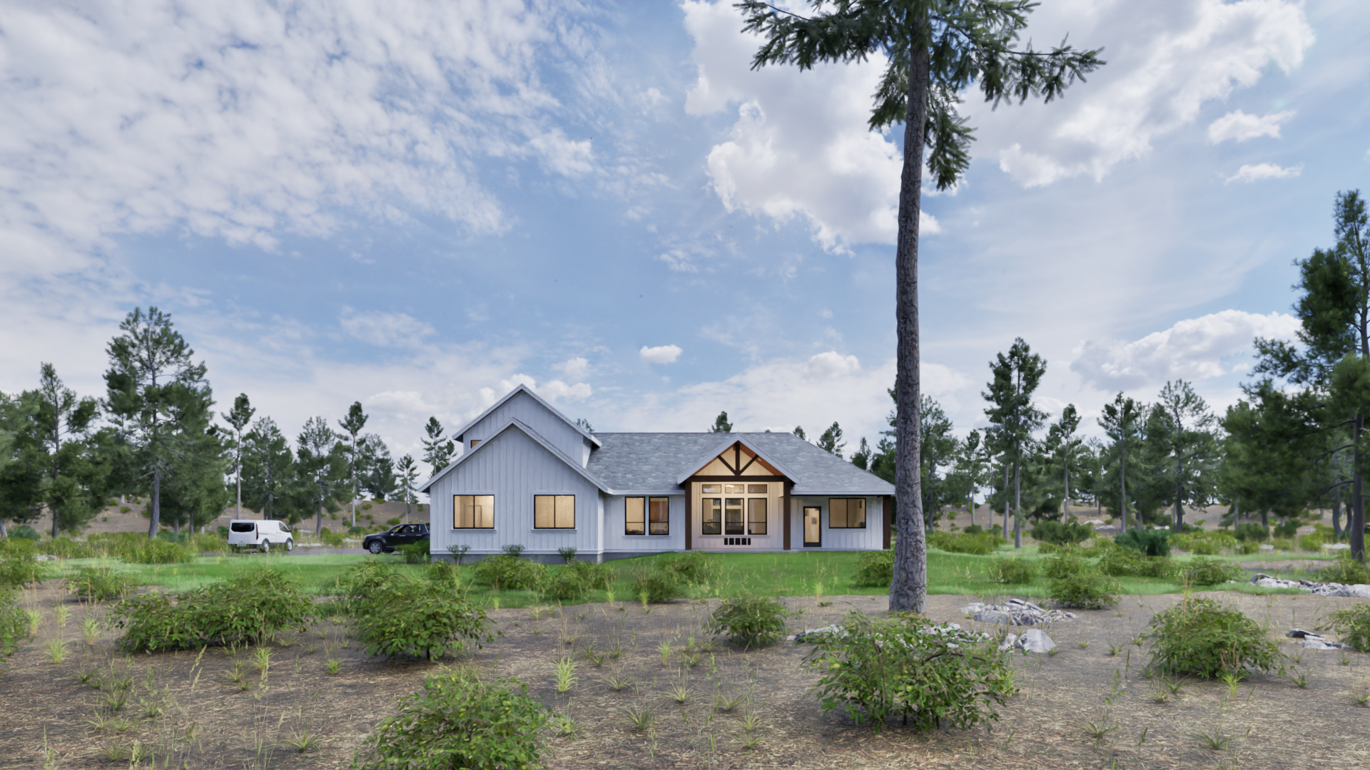 Cover Page: An elevation of the home, usually viewed from the front, and general notes and abbreviations.