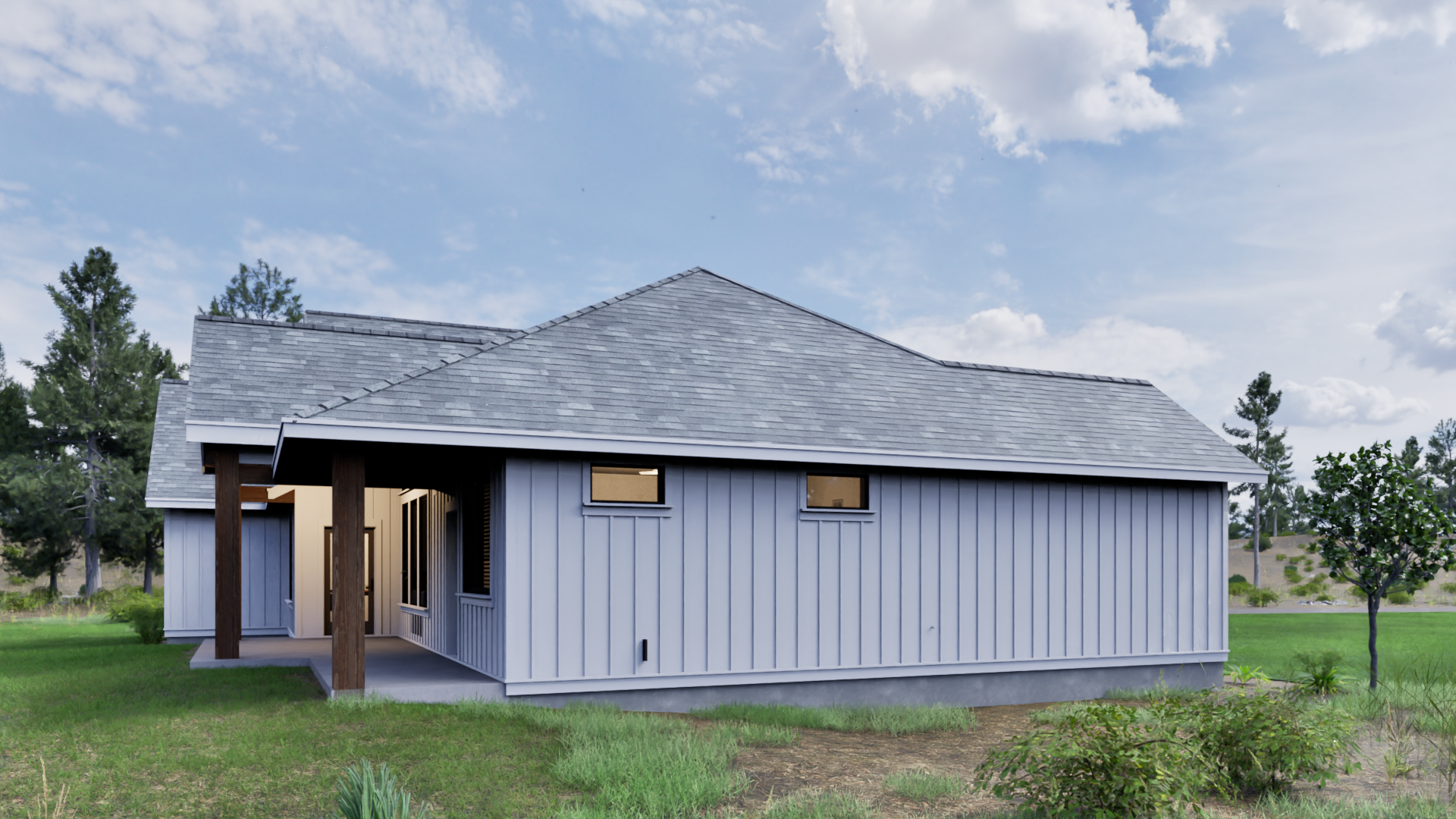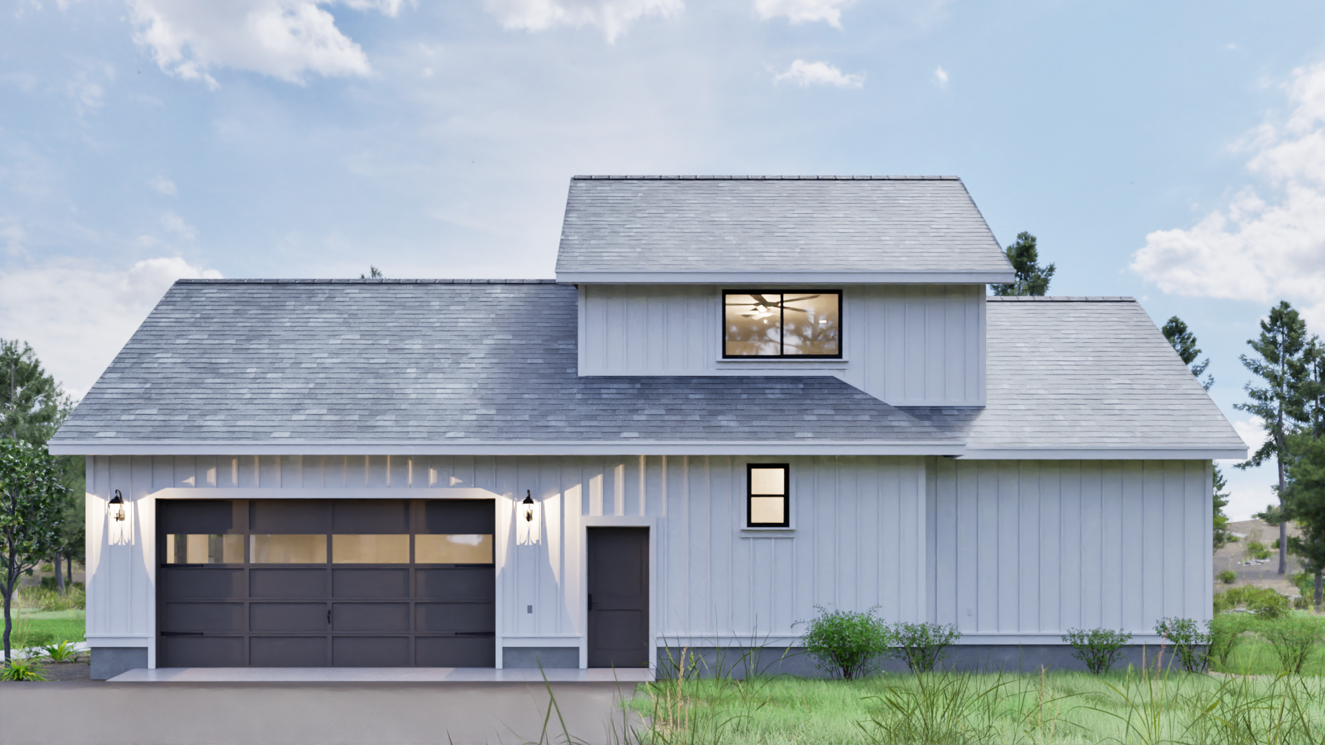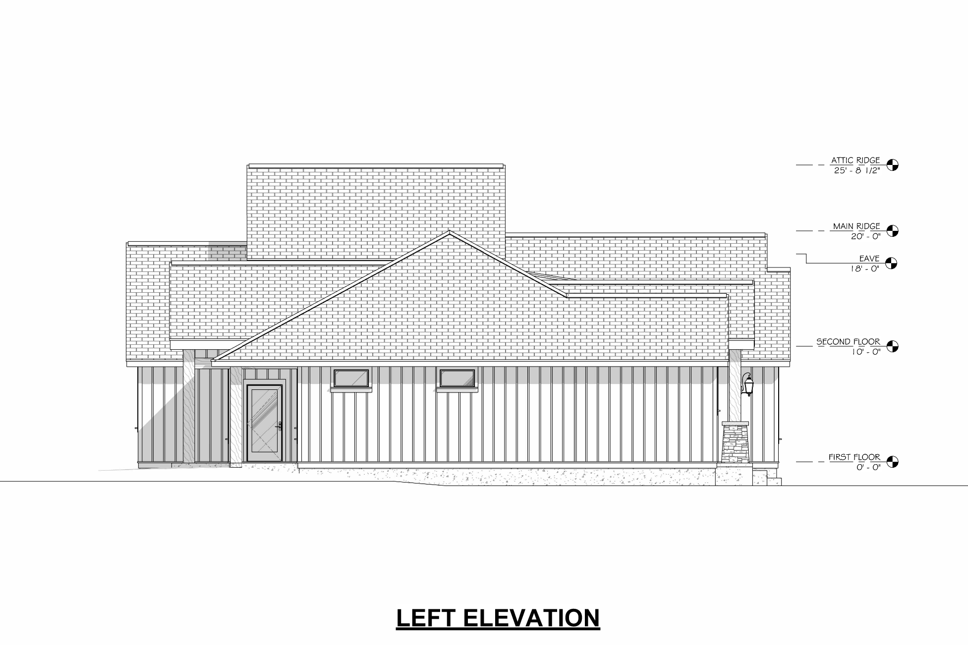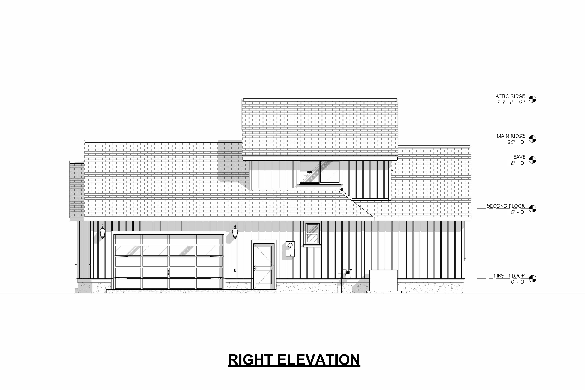 Elevations: Shows the front, sides, and rear, including exterior materials, trim sizes, roof pitches, etc.
