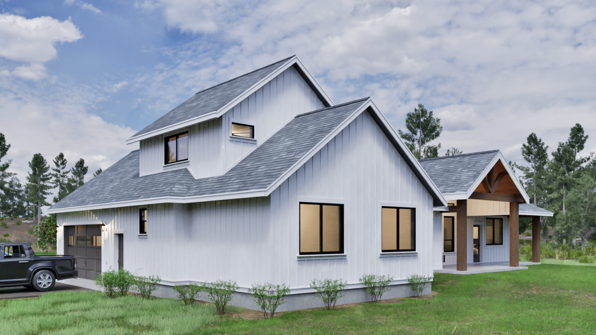 The house, enveloped in board-and-batten siding, exudes a classic craftsman aesthetic, making it a comfortable and classic family home.