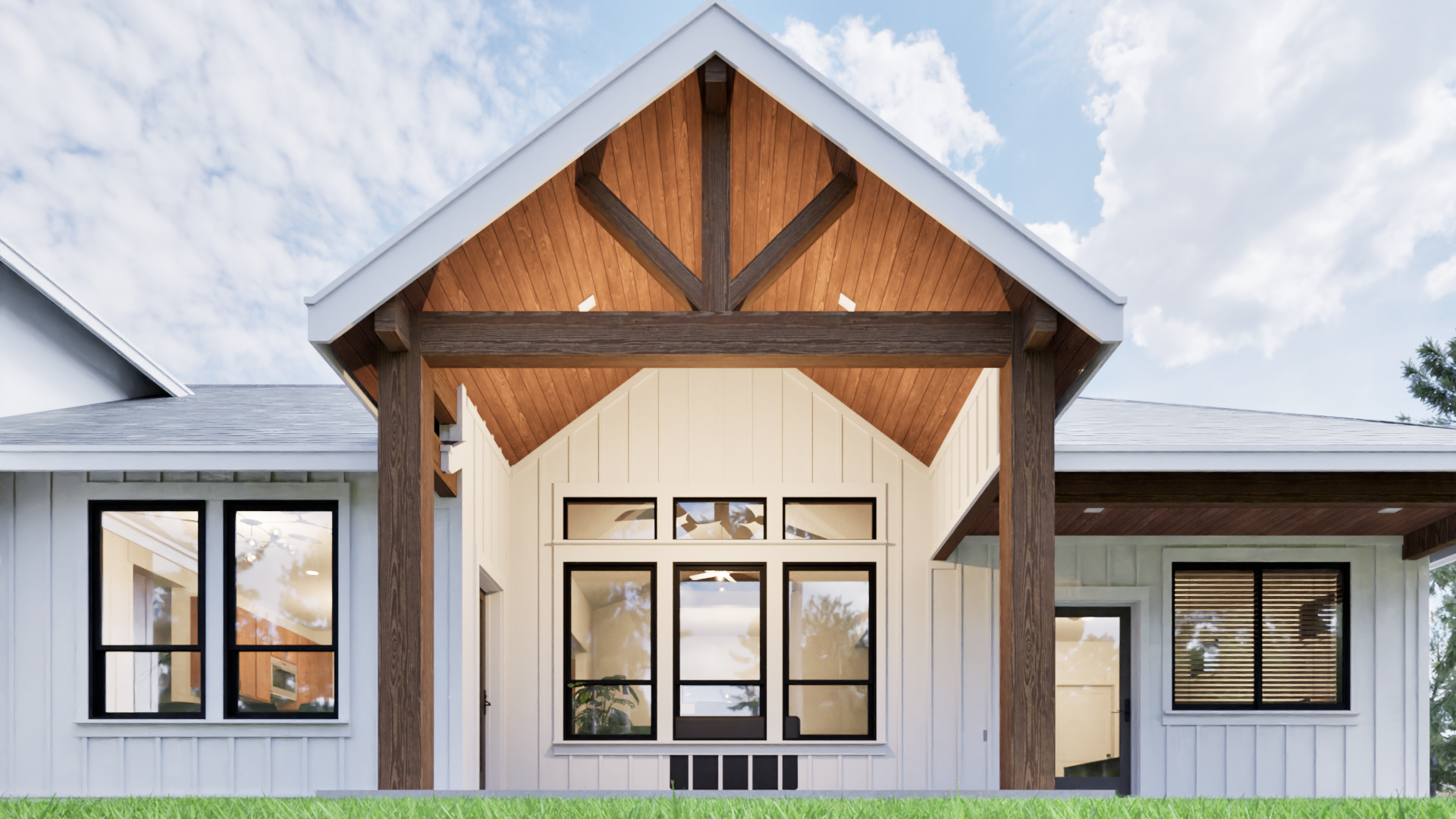 This Two-Story New American House Plan offers a total living space of 2,600 square feet, combining traditional charm with modern functionality. The first floor spans 2,248 square feet, featuring a spacious kitchen with a large island pantry, dining area, utility room, and a study that can be transformed into a home office or a playroom. There’s also a room for versatile use, which can be turned into a guest room, a gym, or a hobby room. Three bedrooms and two bathrooms accommodate family needs comfortably. A generous attached garage on the side of the house provides 678 square feet for two cars, with convenient access from inside. The cozy porch, offering 118 square feet, enhances outdoor living and curb appeal.