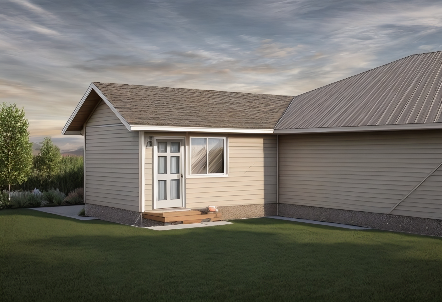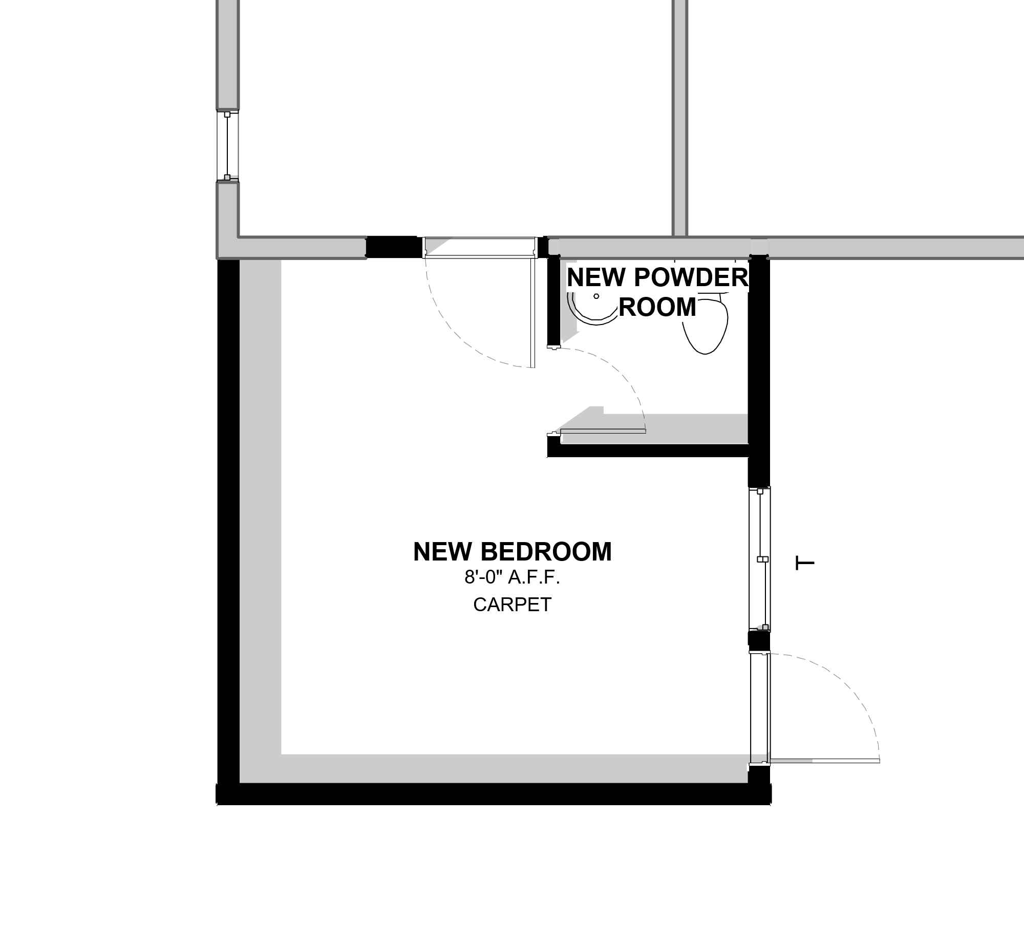 This project features a simple yet elegant 225 sq.ft. bedroom and bathroom addition to a single-family home. Seamlessly integrated into the existing 1,575 sq.ft. structure, this addition prioritizes both functionality and aesthetics. By replacing a window with a new door, we avoided altering existing structural components. The design matches angles and roof materials, blending perfectly with the original architecture. This thoughtfully planned bedroom addition not only expands the living space but also enhances the overall flow of the home, offering a harmonious retreat with easy access to the serene backyard.